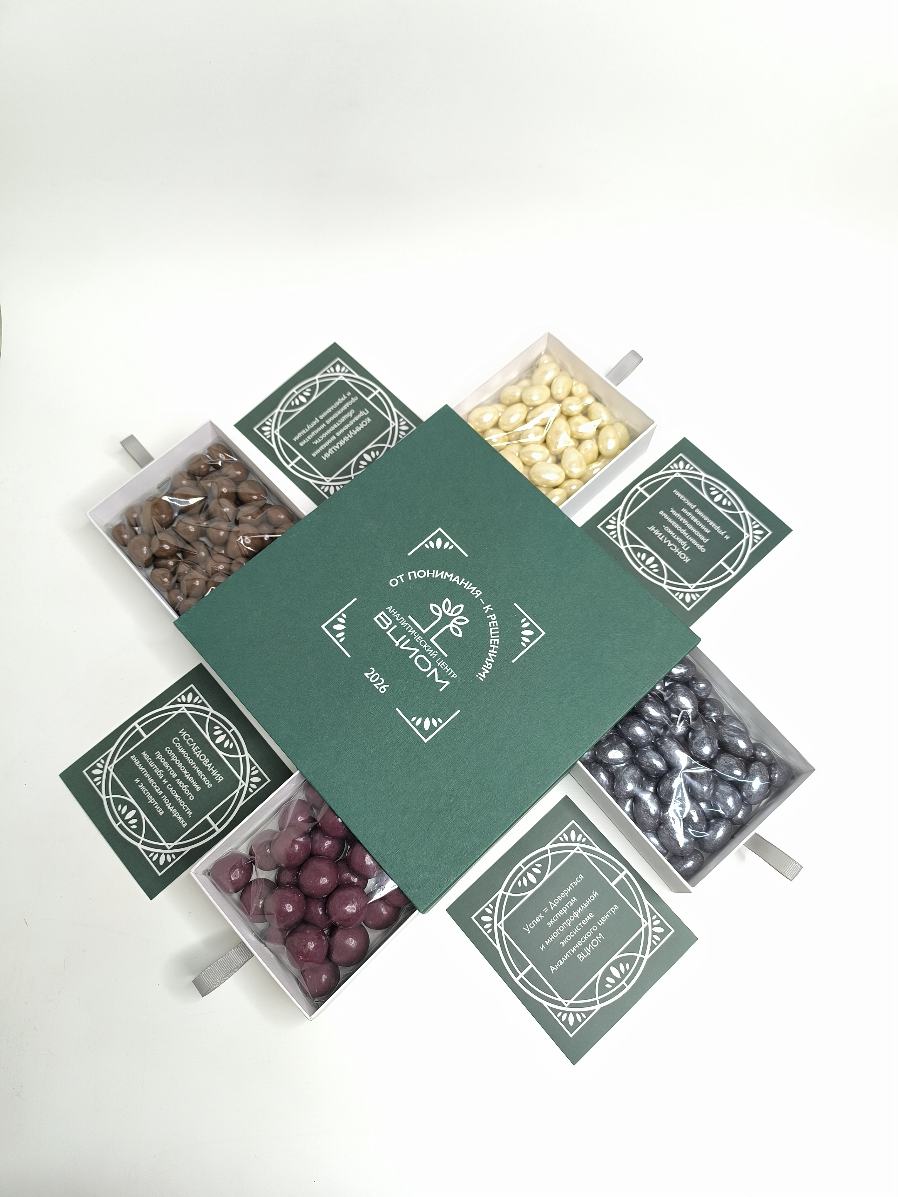Да, мы можем нанести ваш логотип на упаковку, открытки, предметы внутри набора и даже создать уникальный дизайн под ваш фирменный стиль.